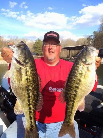 Hey Gang – It has been a busy few weeks for me. I just wrapped up my second 5-boat corporate trip of the week today, and we had a blast! I have been blessed to work with some really great people and today was no exception! I’m not sure if its a good thing, but I was on the water every day in March. Every day. I had a couple of days off….and fished anyway. LOL. I just can’t seem to get enough. Its just too much fun. A huge thanks to everyone for keeping me so busy. I love it and please keep it coming! The fishing has improved a bunch in the last few days. The warm sunny days we had before today really made for a great bite out there. Above Browns Bridge has been more consistent, but the south end has had its days and is improving steadily. We have been focusing on pockets of late. There are large schools of blue backs hanging in the backs of several pockets, and some big fish are there chasing them. The bait and the fish have both been very shallow. often in 5 feet of water or less. Docks in those same areas have been productive as well, much more so when the sun is high. The fresh pine blow downs from the ice storm in these pockets are also holding fish on many days. We have caught a few fish on the points, but they just don’t seem to be holding the quantity or quality of the fish the pockets have yielded consistently in recent days. As far as bait choices, in the mornings, a McStick, a War Eagle spinnerbait, and fluke have been best. As the day progresses, pretty much the same baits have been effective, particualarly on the fish chasing bait in the backs of the pockets. The fluke bite around the docks, when the sun is up, is really starting to improve as well. The Davis Shaky Head HBT Series with a trick worm or senko has been a good bet around the docks and the blow downs as well. Of course, the weightless senko is always a good bet around the docks throughout the spring. There were several fish starting to bed before the cold front hit, and I look for a good wave to go on bed with the upcoming full moon, particularly the largemouth. I look for the south end to get consistently good over the next few days, and look for some more big sacks, like the one Scotty and I are sporting above, to show up. Don’t forget about the upcoming G-Loomis/Shimano Owners tournament coming to Little Hall on June 6th. $300 in qualifying purchases and you’re in! See the folks at Hammond’s or the Dugout for details. For April, I only have the 22, 23, and the afternoon of the 29th open. Other than a day off on Easter, I am booked solid. My May is starting to fill up quickly as well, so please let me know as soon as you have a date in mind. Thanks to all, and May God Bless – Jimbo